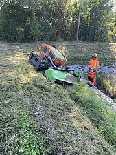 Die leistungsstarke, funkgesteuerte Mulchraupe ist für extreme Beanspruchungen gemacht. Ausgerüstet mit einem Forst-/ o. Grasmulchkopf ermöglicht der niedrige Schwerpunkt auch Einsätze in Steilhängen bis zu 60° Neigung.