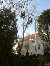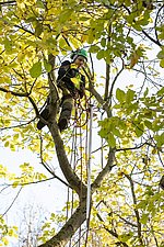 Überall dort, wo klassische Fällmethoden an ihre Grenzen stoßen (z.B. in Gärten, Hanglagen, usw.), setzen wir auf die sog. Seilklettertechnik (SKT) durch unsere speziell dafür ausgebildeteten Mitarbeiter. Insbesondere bei Arbeiten rund um die Baumpflege ist die SKT oft die favorisierte Methode für flexibles sowie schonendes Arbeiten.