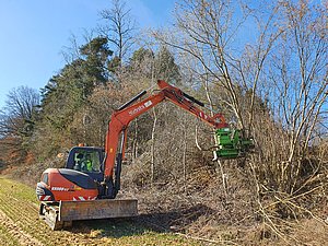 Unser Kompaktbagger mit einem Einsatzgewicht von rund 8,0 Tonnen ist dank seiner Gummiketten sehr geländegängig und bodenschonend zugleich. Mit ihm können unterschiedliche Tätigkeitsfelder bedient werden: